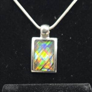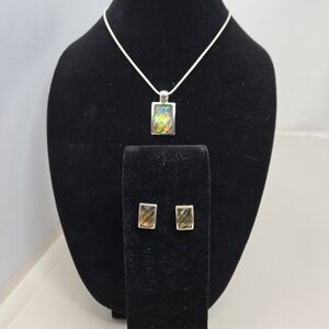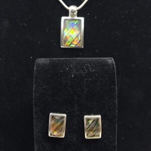 Kenneth Cole KC Silver Tone Necklace-Earrings Faceted Iridescence Rainbow Colors