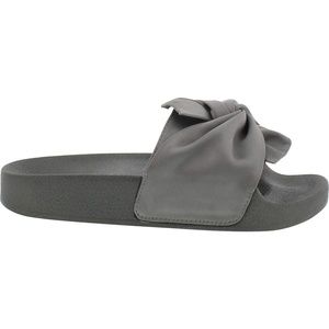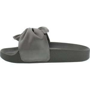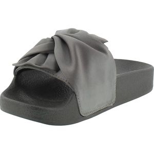 KCNY Shower Twist girls' slide is a must have. The knotted satin strap gives the classic slide a clean and refined look. The contoured footbed add an extra layer of comfort . Fit - True to size