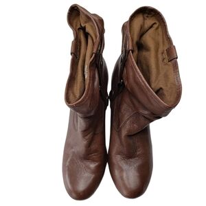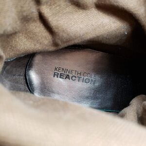Excellent used condition! Step out in edgy style with this Blue Ice boot from Kenneth Cole REACTION. The slouchy leather upper features an equestrian-style strap on both sides and an on-trend wedge heel to give you a lift that's flattering and fashion-forward. Pair with shorts, skinny jeans or work slacks. 100% leather.