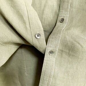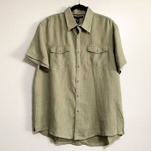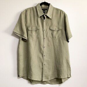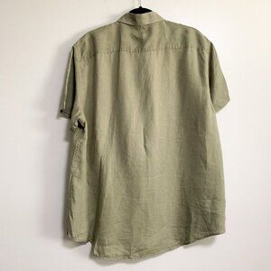 Kenneth Cole Linen Flap Pocket Button Front Short Sleeve Army Green Shirt. Size XL