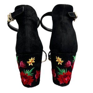 Kenneth Cole Lisa Black Suede Heels Sandals size 9 Embroidered Floral Chunky