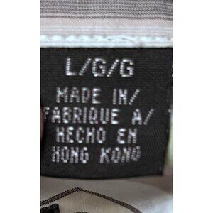 I love this long sleeve casual shirt by Kenneth Cole. It is 100% cotton, white with gray and light green strips. The extra attention paid to the cuffs and collar make it special.