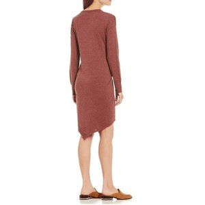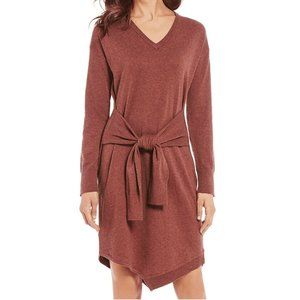 Kenneth Cole Womens M Rose Brown Knot Front Asymmetrical Stretch Sweater Dress NWT