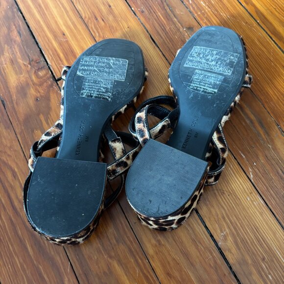 Kenneth Cole Maisie Low Block Heel Strappy Sandal in Leopard Fur - 6