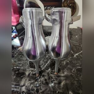 Silver Mallory 3 inch heels. Perfect for weddings and office parties.
