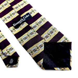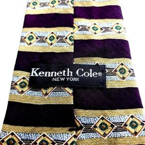 Kenneth Cole Maroon Tan Abstract Striped Print Wide Silk Tie