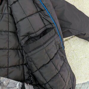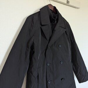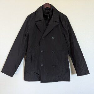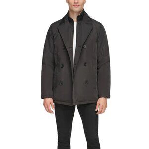Excellent (Like-New!) Used Condition - Kenneth Cole Men's Double Breasted Winter Peacoat with Removable Bib in Black Water Resistant Fabric. Size L.