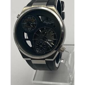 Elevate your style with this Kenneth Cole men's dual time watch. This watch is in good pre-owned working condition. The watch has small scuffs and imperfections. Please see all photos for condition.