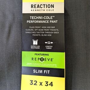 Kenneth Cole Men's Gray Techni-Cole Performance Slim Fit Pants Size 32 x 34