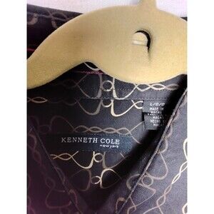 The product is a Kenneth Cole Men's Black and Gold Long Sleeve Button Shirt in size Large. Made of 100% cotton, this button-up shirt features a collared neckline and machine washable garment care. Perfect for all seasons, this shirt is a stylish and versatile addition to any man's wardrobe. The black and gold accents add a touch of sophistication, while the regular fit ensures a comfortable and flattering silhouette.
