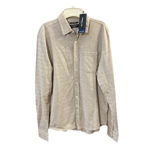 Kenneth Cole Men’s Performance Button Up Shirt M New Beige Super Soft Techni-Cole hundred percent cotton