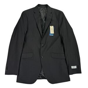 Kenneth Cole Mens Ready Flex Slim Fit Pin-Dot Suit Jacket Black 38L