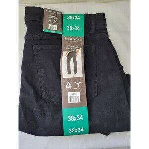 Kenneth Cole Men's Straight Fit 2 Way Stretch Black Denim Jeans Size 38X34