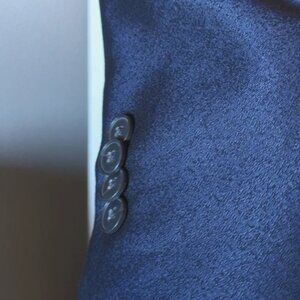 Honestly, the pictures do not do this jacket justice. The blue and black color is simply stunning. Kenneth Cole men's tuxedo style jacket size 44R.