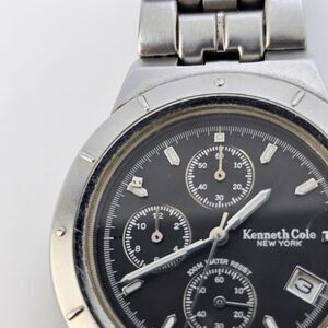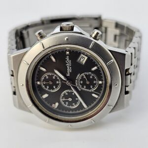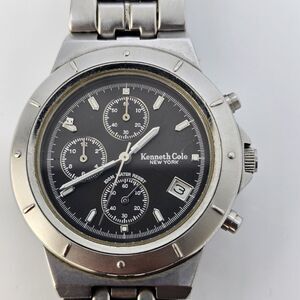 Kenneth Cole Men's Watch 38MM Black Dial Date Gray Bracelet 6.5" New Battery