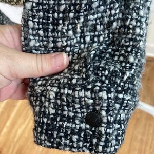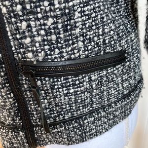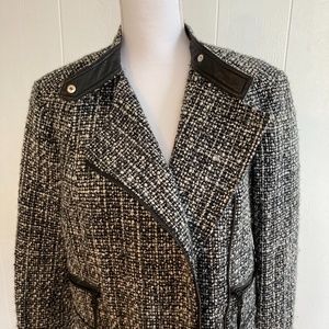 Kenneth Cole Moto Jacket in Black and White Tweed with Leather Trim M