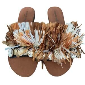 Kenneth Cole NWOB Leather Heron Slide Sandal Fringe Jewels size 9.5 new without box.
