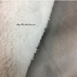 Great transitional jacket into Fall is this pretty Kenneth Cole NWT soft open jacket made of buttery vegan suede with off white faux sherling interior. Main color is between a light gray & tan depending on the lighting. Open drape style with side pockets. Size large.