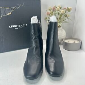Kenneth Cole NY Alec Leather Chunky Heel Ankle Boots Black Women 11 M Tried On