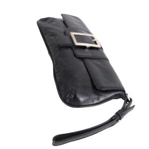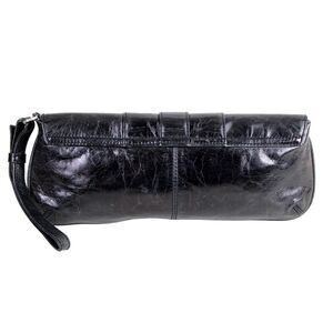 Kenneth Cole NY BLACK GENUINE LEATHER MEDIUM FLAP PURSE CLUTCH WALLET WRISTLET