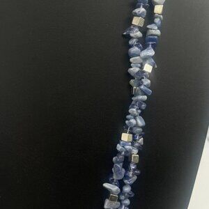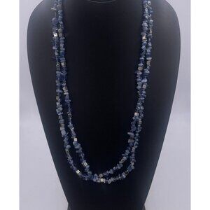 Kenneth Cole NY Blue Stone Chips Long Necklace Double Strand Layered 30-33 Inch
