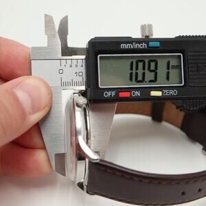 Pre-owned but in great condition! The band is in good condition with light wear. PLEASE see picture #4 for the measurement to confirm it is a good size for you. The domed crystal is also in good condition with no cracks, but some small scratches near the 12 to 2 hour markers, please see all pictures for details on any scratches. The watch is currently running smooth and keeping accurate time. Battery was replaced (9/29/25), and we will check the watch before shipping to ensure it is working!