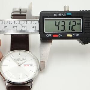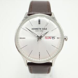 Kenneth Cole NY Mens 43mm Day Date Classic Watch Brown Leather w New Battery