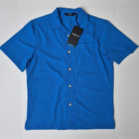 Kenneth Cole NY Techni-Cole Relaxed Fit Textured Woven Shirt Mens M Cobalt - NWT