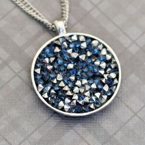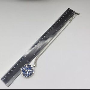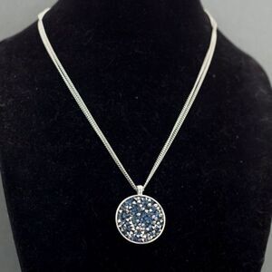 Kenneth Cole Necklace Blue Silver Tone Beaded Round Pendant 18 Inch Double Chain