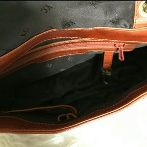 Beautiful timeless Kenneth Cole New York handbag genuine leather. Brown leather with bronze hardware. Two decorative buckles two on front one on each side. Inside has one inside pocket with a zipper on the other side two tiny pockets and a key holder. Shows some scuffs but no major defects. Height 8, width 11 3/4, depth 5.5" handle drop approximately 8.5. PRICE FIRM just lowered the price on 3/15/2018 on 🔴SALE🔴 for a short time 🕞