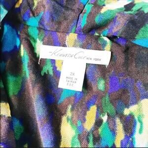 Kenneth Cole New York Abstract Printed Cowl Neck S/S Top Women's Size 2X