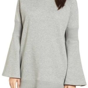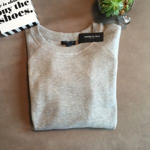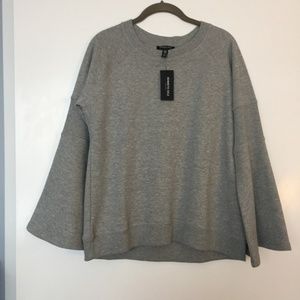 Kenneth Cole NY Flare sleeve Ribbed Grey Gray Sweater Sweatshirt. Not your average sweatshirt: This one features clever ribbing just above the elbows and flared bell sleeves for feminine allure. Pullover style with crewneck and long sleeves. 87% cotton and 13% polyester. Size Medium. Brand New with Tags. NWT. Length from shoulder to hem 25”, bust laying flat 20”, sleeve length 23”