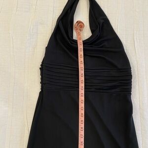 This elegant black halter dress is perfect for any occasion. Its sleek design offers a flattering fit, making it a must-have in your wardrobe. This beautiful dress features a cowl neck and hidden side zipper. Size Medium. No flaws. EUC.