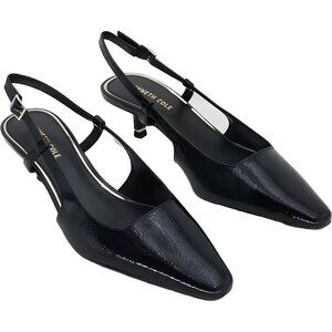 Buy now: Kenneth Cole New York Black Patent Polyurethane Slingback Pumps Women's US 10M — in excellent condition. Premium footwear, delivered fast — same or next business day shipping. All photos are of the item in hand; we never use stock images.
