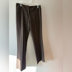 Kenneth Cole New York, dark brown/black woven fabric; poly/rayon/spandex for comfort. Size 6; 39” out seam; 33.5” in seam; 19”!around bottom of hem. Two back pockets never opened. Excellent condition. From non-smoking, pet free home.