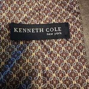 geometric pattern, brown tones, formal tie, business accessory, Kenneth Cole, patterned silk, sophisticated, classic style, office wear, elegant
