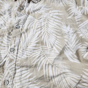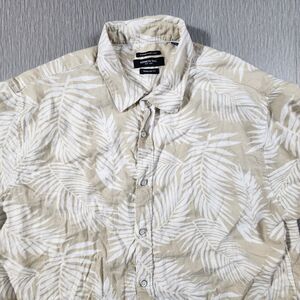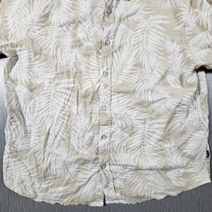 Kenneth Cole New York Linen Blend Beige Palm Print Button Up Shirt 2XL Beach