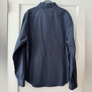 Kenneth Cole New York Navy Striped Button Down Long Sleeve Shirt Size XL