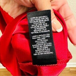 Elegant red maxi dress by Kenneth Cole New York. Features a sleeveless design with a layered top.
