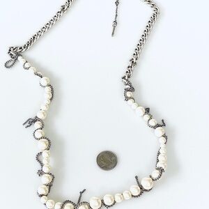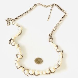 Kenneth Cole New York Statement Necklace with Faux Pearls Silver Tone