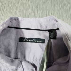 Elevate your wardrobe with this Kenneth Cole button-up shirt in a stunning plum purple color. The shirt is made of 100% linen knit fabric, which makes it comfortable and breathable, perfect for summer, fall, or spring. The shirt features a collared neckline with a button-down closure, short sleeves, and a slimming fit that flatters your body shape. It also has non-iron features, making it easy to maintain and wrinkle-free. The shirt comes with pockets, making it practical and functional for travel, casual outings, or business meetings. This designer shirt is part of the Kenneth Cole Summer product line, which means it is a classic and colorful addition to your wardrobe. It is available in size L, and the shirt is machine washable. Get ready to make a statement with this stylish shirt that combines comfort, functionality, and fashion.