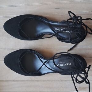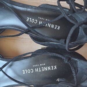 Kenneth Cole New York Tonniane Black Suede Wrap Around Ankle Lace Up Block Heel