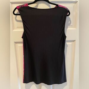 Super cute fuscia and black floral blouse. Sleeveless with feminine twisted neckline design. Very flattering. Excellent preowned condition. Smoke free, dog friendly home.