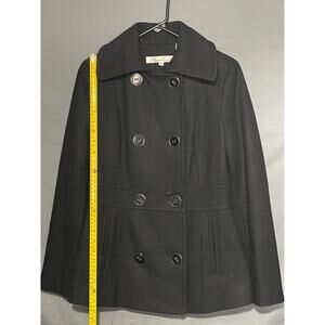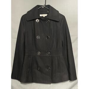 Kenneth Cole New York Womens Black Wool Blend Peacoat w/ Purple Lining Size 4