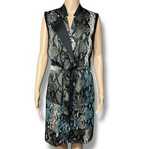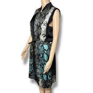 Black Teal Snakeskin Print Blouson Dress Kenneth Cole New York
