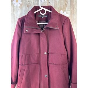 Kenneth Cole New York Women's Coat Sz M Wine Cranberry Wool Blended Snap Zipper