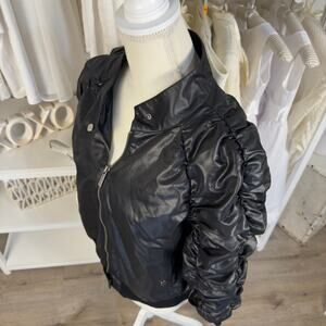 Kenneth Cole New York Women's Size M Faux Black Leather Zip Up Jacket #3407