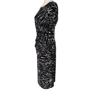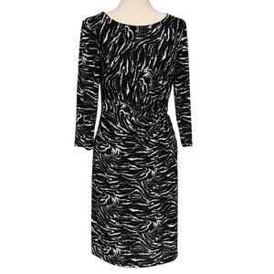 Kenneth Cole New York Zebra Print Ruched Front Sheath Dress, Size Med.