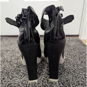 Heel height is 5.5 in, with a 1 in platform so the heels are approx 4.5 in tall. :)