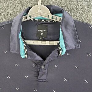 Kenneth Cole Polo Shirt Blue Mens XL Golf Club Print Sports Casual UPF 50+